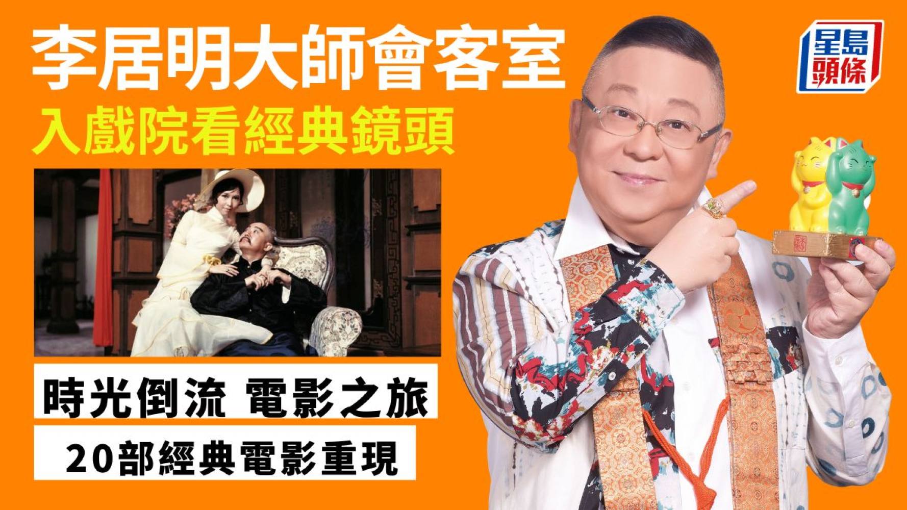 我們小時候看西片很多時只是追着字幕,其實是沒有看演技、看鏡頭調配、服裝、音樂等,我直言現在看《教父》才懂得看,才知道馬龍白蘭度的演技這麼有型。於是,我明白為甚麼現在的人不入戲院,因為近這十年、八年,好戲屈指可數,不像以前那樣每天都有好戲上畫。記得我們小時候第一次入戲院看戲是看《埃及妖后》、《十戒》,一看就是三個小時。還有《梁山伯與祝英台》,我家姐跟凌波姐姐一起唱,從頭唱到尾,非常豐盛。所以,你一定要去戲院看、還要看回當年的戲,才能感受到電影的魅力。