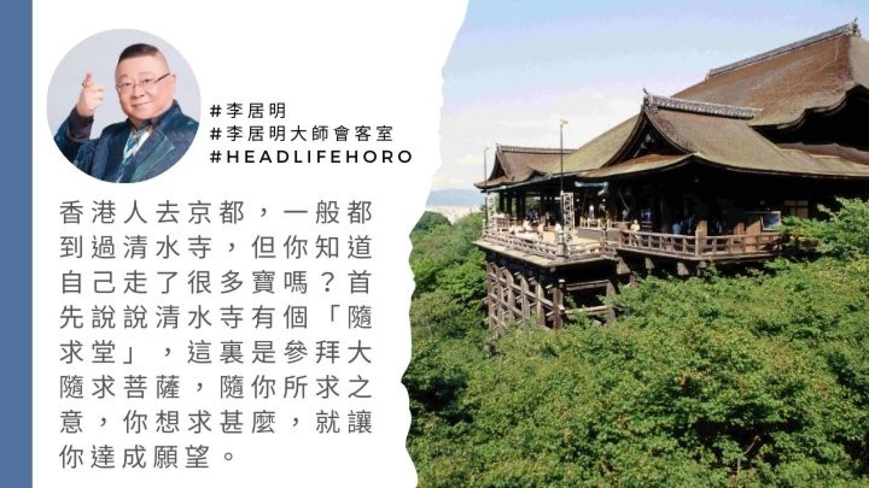 香港人去京都,一般都到過清水寺,但你知道自己走了很多寶嗎?首先說說清水寺有個「隨求堂」,這裏是參拜大隨求菩薩,隨求隨求,隨你所求之意,你想求甚麼,就讓你達成願望,非常靈驗。影視紅星江美儀曾參加我的禮佛團遊覽過「隨求堂」,令她記憶深刻。