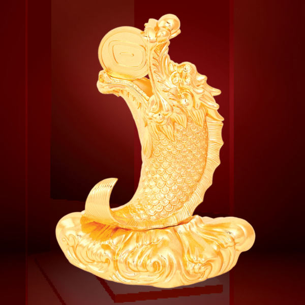 此物是中國古代吉祥物「鯉躍龍門」的造型。龍頭魚身,由魚變成龍,一躍登堂,馬上暴發起來,身價十倍,寓意人人都有成功的轉機。此物又稱鰲魚,代表鰲頭獨佔、金榜題名之意。最重要是鰲魚屬水性物,可平衡火重之馬年,頭為龍,有化凶消災之力。在傳統建築中,鰲魚常被用作屋頂裝飾,取其能「吞火吐水」的特性,有防火的功能。