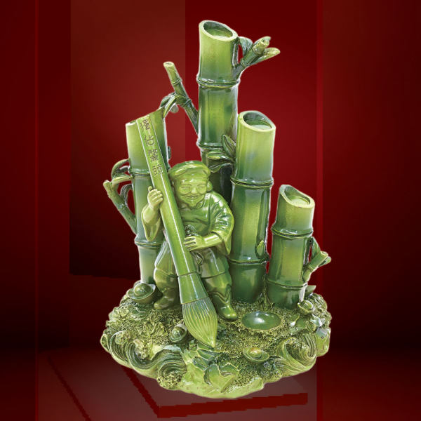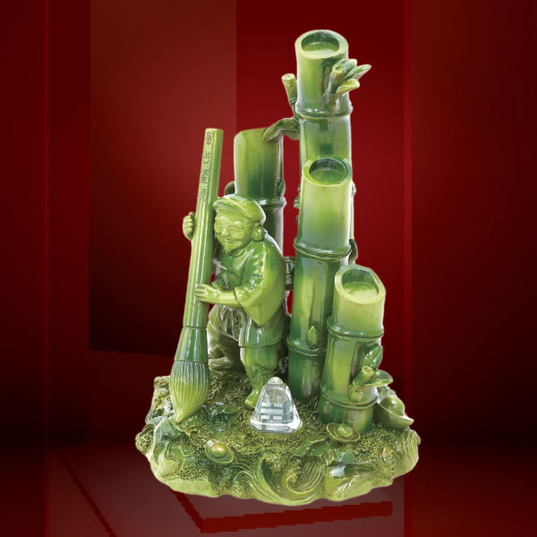 今年四綠文昌貴人星飛臨東北方,家家戶戶在大廳或房間東北方放一座「財神文昌筆」,非常奪目。這是大黑天財神拿著一枝很大的筆,與身後的「四枝富貴竹」融合在一起, 便成為加料「財神文昌筆」,既可以為我們招財,又可以得到文昌運,堪稱中國風水物品中的極品。
