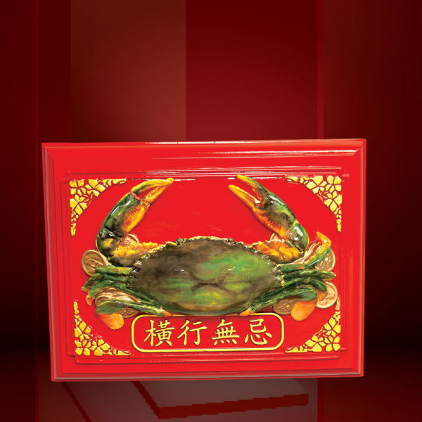 除招財靈驗外,蟹亦具霸氣及煞氣,堅硬蟹殼能擋走衰運,誰會抗拒擁有一件「橫行無忌」,為自己招來橫財富貴,而且霸氣十足,箝住死不放手,無人敢跟你搶錢!店家可將「橫行無忌」懸掛於大門上方,向室內,能為店家強力招橫財,緊緊箝住客人的錢包!