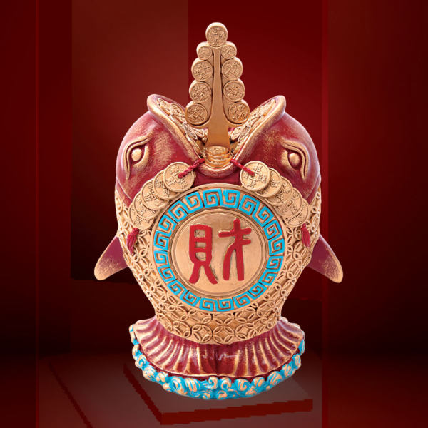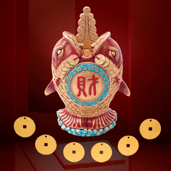 「鯨吞萬里財」是兩條大鯨魚,「魚」與「餘」諧音,象徵富足、富貴。雙魚圖案寓意雙倍豐收、好事成雙。鯨嘴還含著一棵搖錢樹,代表永遠在嘴邊有財,正應財源滾滾而來!如果想加快催財,可加放招財寶牌,新年放此吉祥物於東方,令滿屋財氣,十分應節!