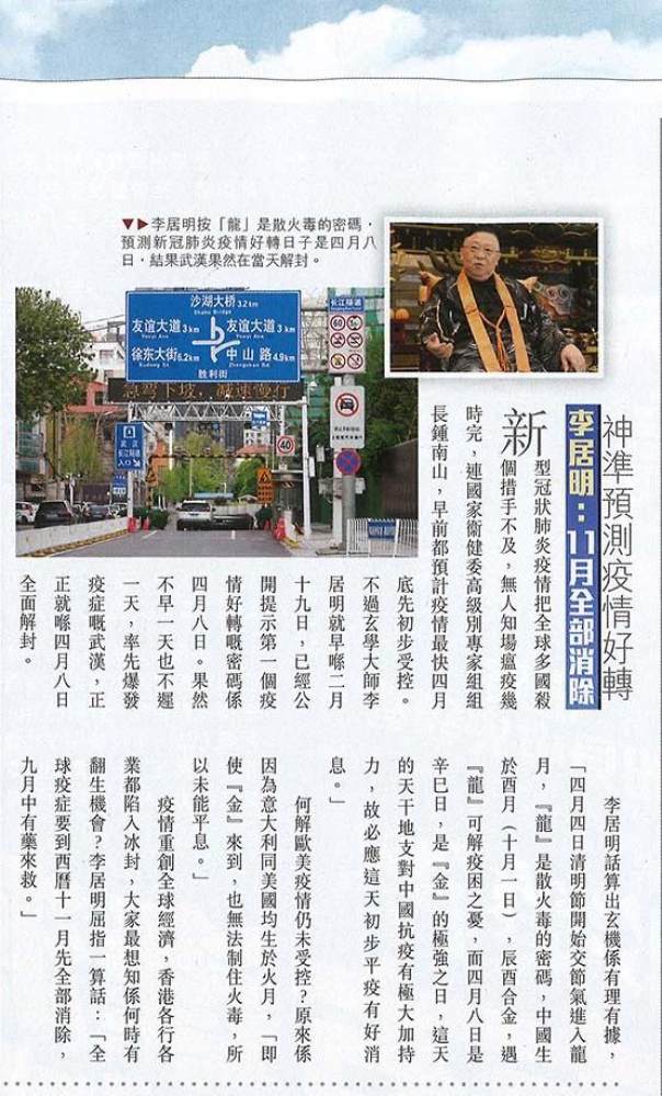 果然不早一天也不遲一天,武漢就在4月8日全城解封,大師當日金口一批竟然應驗,真正令人明白,大師對疫情的占算,有一定的理據所在,不是信口開河。4月8日此預言可見2月27日大師接受傳媒訪問的視頻。以此追問大師何解如此精準,大師云: