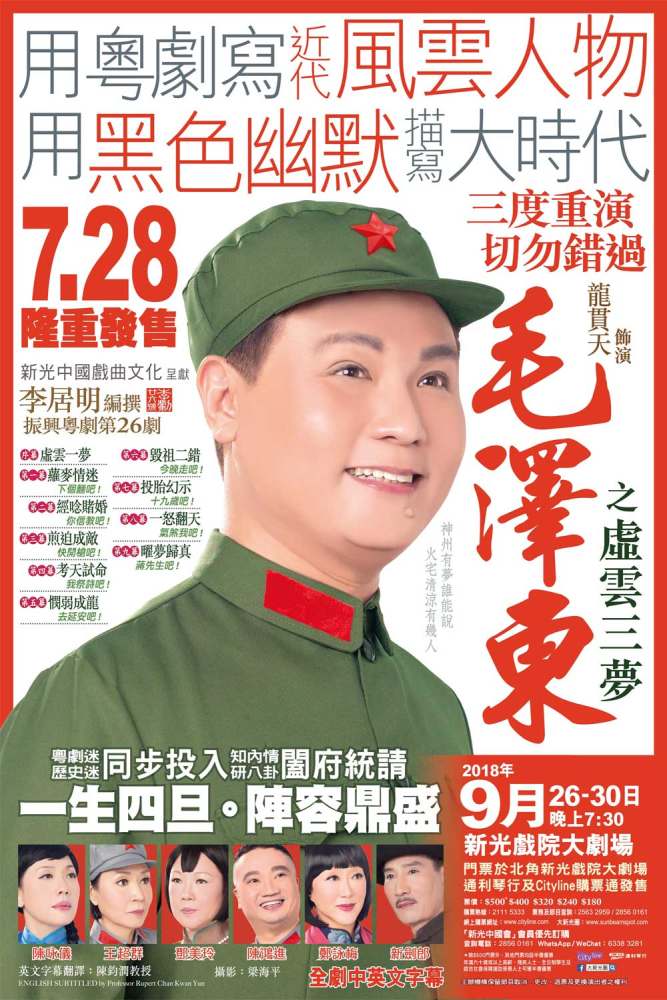 粵劇《毛澤東之虛雲三夢》: 編劇:李居明│演出:新光中國戲曲文化│主演:龍貫天、陳咏儀、王超群、鄧美玲、新劍郎、陳鴻進、呂洪廣、鄭詠梅、祝如山、蕭郎、白雲龍、陳永光